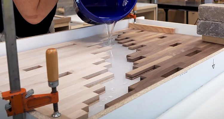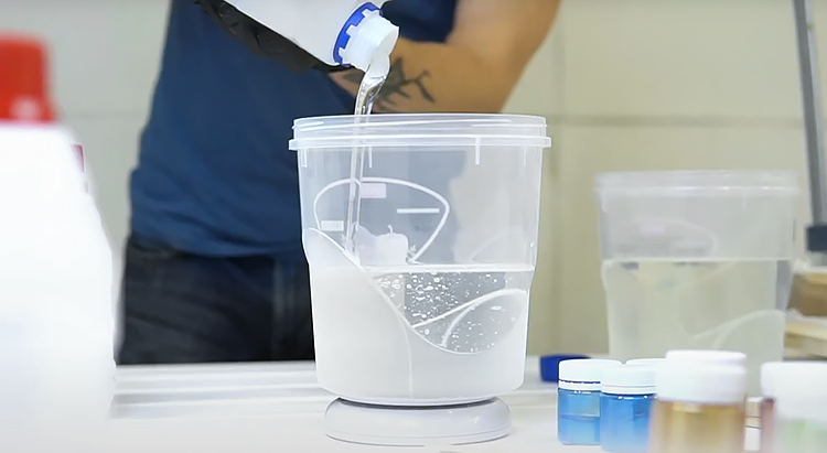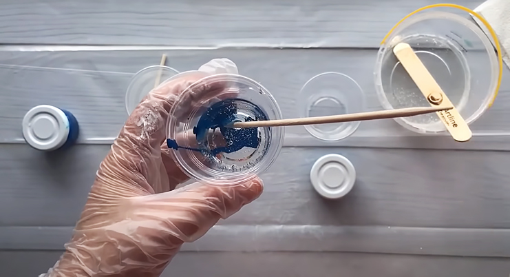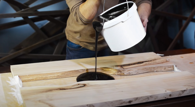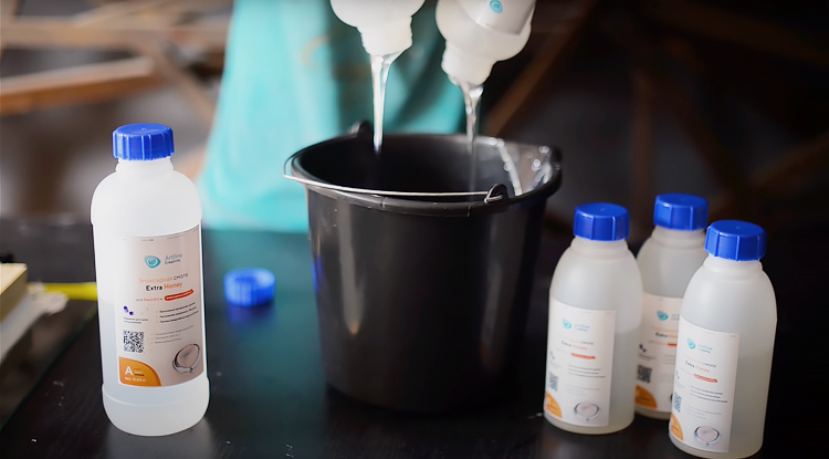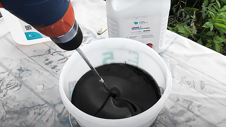Смешивание эпоксидной смолы для заливки столешницы