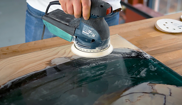 Шлифовка столешницы из эпоксидной смолы